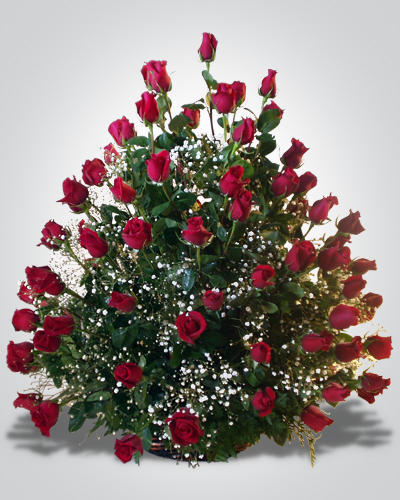 Espectacular arreglo floral de cien rosas rojas en canasto, un regalo perfecto para demostrar todo nuestro cariño.